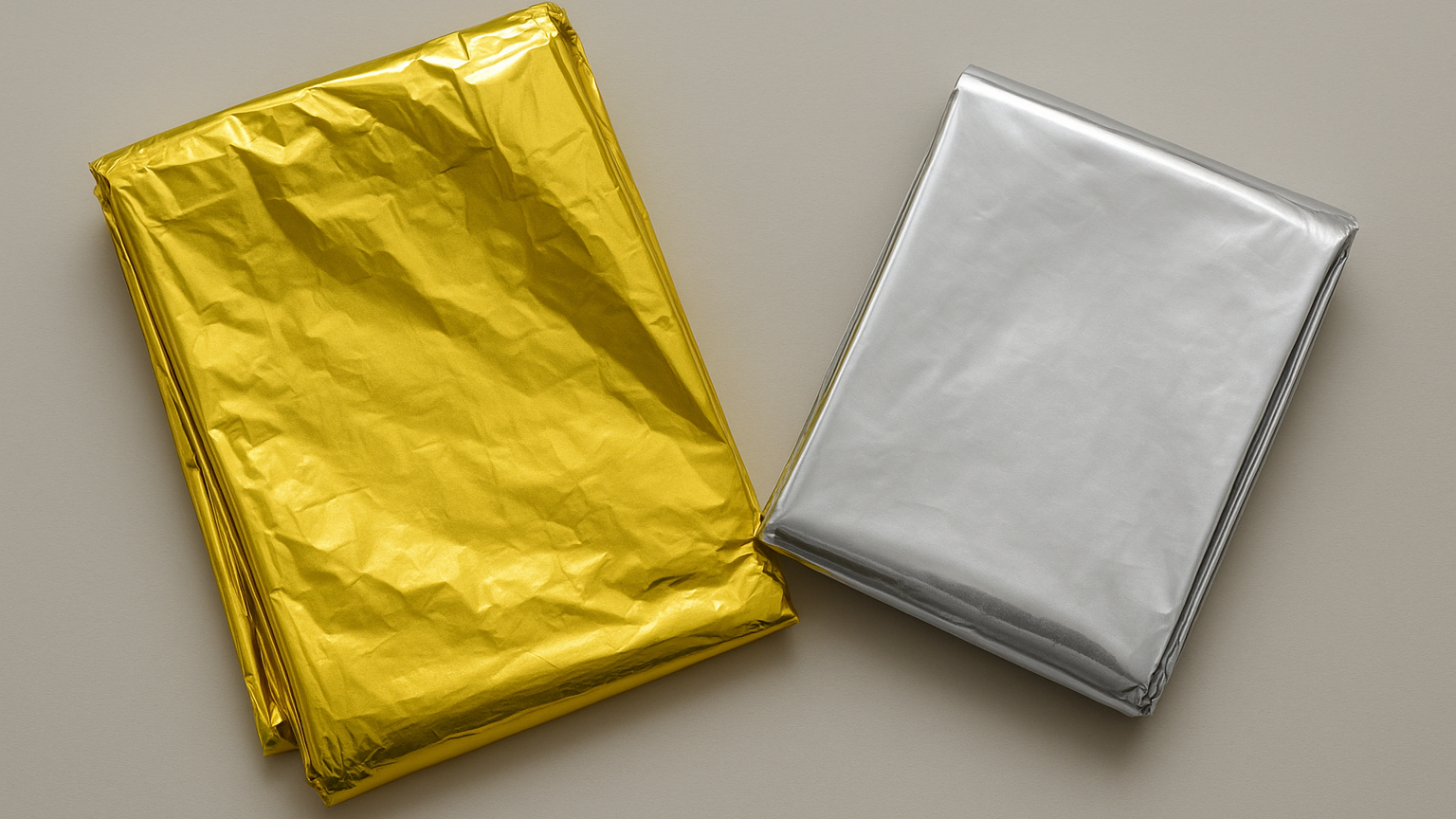 Most thermal blankets have two sides: silver and gold. Remember: for hypothermia — silver side inward, for overheating — silver side outward. Therefore, if you want a universal and reliable option, choose a double-sided blanket.