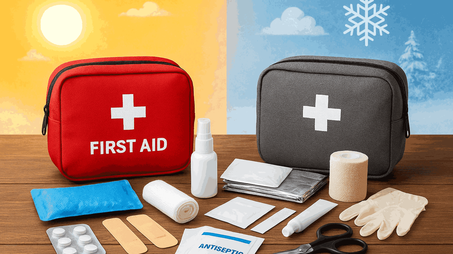 Аптечка влітку повинна допомогти уникнути перегріву, інфекцій і сонячних травм. Аптечка взимку — захистити від холоду, обмороження та падінь. Для аптечок, які ви використовуєте в тактичній медицині, сезонна адаптація ще важливіша: зміна температури впливає не тільки на людину, а й на ефективність медичних засобів та термін їхньої служби.